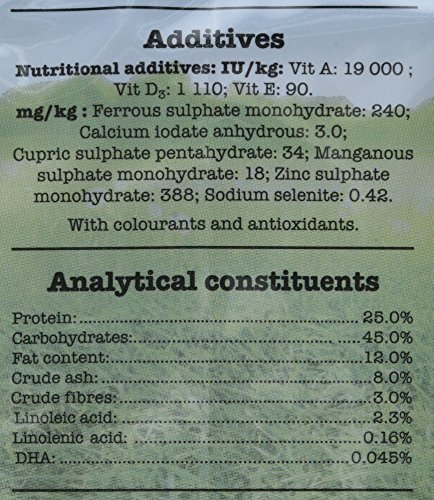 vegetables in the green & orange kernels). Milk & milk derivatives (4% skimmed milk in the bone kernel). ANALYSIS Protein 28.0% Fat content 12.0% Crude ash 8.0% Crude fibres 2.0% Linoleic acid 2.7% Linolenic acid 0.16% FEEDING GUIDE Expected Adult
