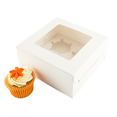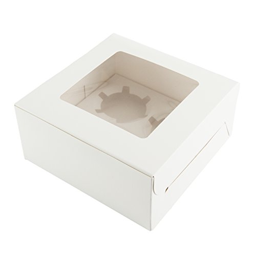 Bakewell's Cake Boxes 10 Scatole per Cupcake in Bianco, Carta Lucida. Per 4 Cupcake Confezione da 10 pezzi