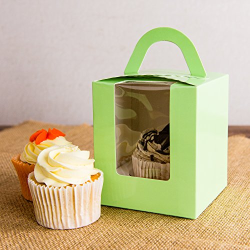 Scatole per cupcake individuali con maniglia e una piccola finestra per mostrare i tuoi dolci. Ideale per vendite di cupcake, feste estive, eventi di beneficenza, feste di compleanno, matrimoni, baby shower, battesimi e bricolage