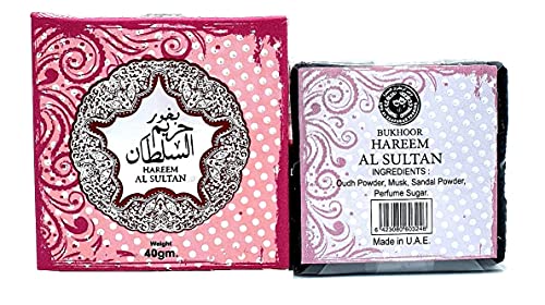 Bakhoor Hareem AL Sultan 40 gm in profumo di dolce, goloso, floreale, fruttato, vanigliato, prodotto in UAE, ideale per uso interno ed esterno, con incenso deodorante ad aria, facile da usare