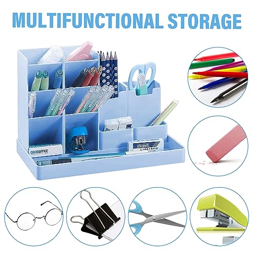 Bakiauli Organizer Scrivania, 5 Pezzi Portapenne da Scrivania Multifunzionale e Combinabile Organizzatore Scrivania per la Scuola Home Office Art Supplies (Blu)