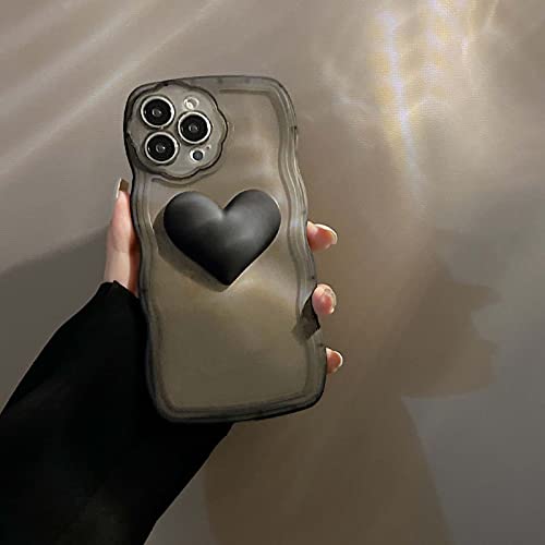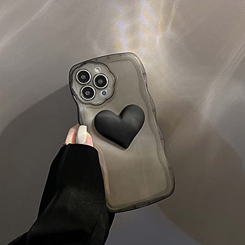 Bakicey Custodia per iPhone 14 Pro con collana di perle Aesthetic nero 3D cuore custodia protettiva TPU donne ragazze glitter antigraffio Case con graziosa catena per iPhone 14 Pro