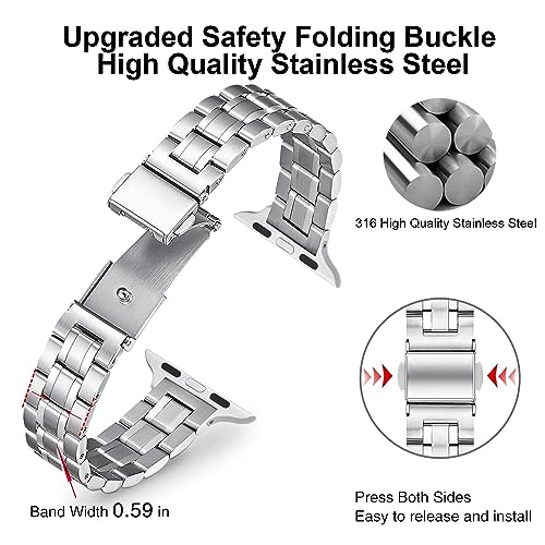Baklon 2 Pezzi Compatibile con Cinturino Apple Watch 38/40/41mm, Cinturino casual in metallo inossidabile Compatibile con iWatch series Ultra2/Ultra/SE2/SE/9 8 7 6 5 4 3 2 1 Argento