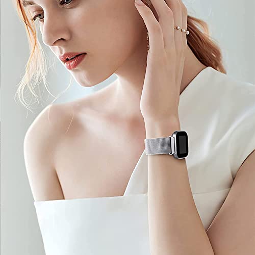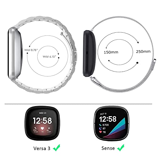 Baklon 2 Pezzi Compatibile con Fitbit Versa/Fitbit Versa 2, Cinturino in Acciaio Inossidabile di Ricambio Sportivo Compatibile con Fitbit Versa/Versa 2/ Versa Lite, Argento