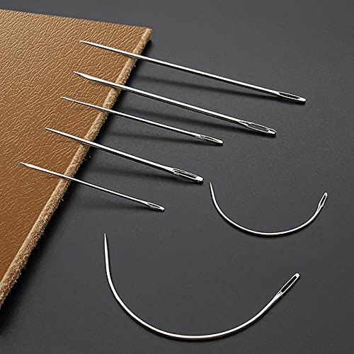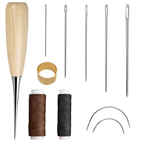 BAKTOON - Set di attrezzi da cucito per la lavorazione della pelle, con aghi curvi per tappezzeria, filo di cuoio cerato, fagioli e ditale