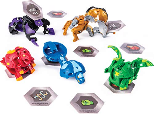 BAKUGAN Battle Pack, 5 Sfere, 3 Classici e 2 Ultra, Red T-Rex, Blue Cobra, Green Dragonoid,Black Lion e Gold Gargoyle