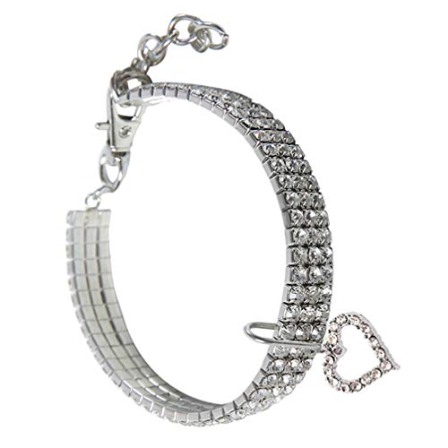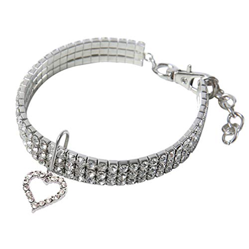 Balacoo Collare per Cane con Strass con Ciondolo a Cuore Collare per Cane Regolabile Collare Gioielli per Animali Domestici per Cane Gatto Cucciolo Gattino Taglia s (Bianco)