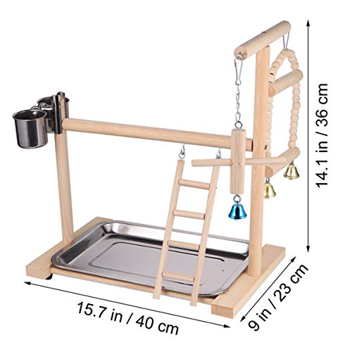 Il parco giochi in legno per pappagalli può mantenere sani i tuoi uccelli domestici attraverso l'esercizio, adatto a Parrocchetti Grigio africano Conures Cockatiel Cacatua Finch Parakeets Lovebirds.