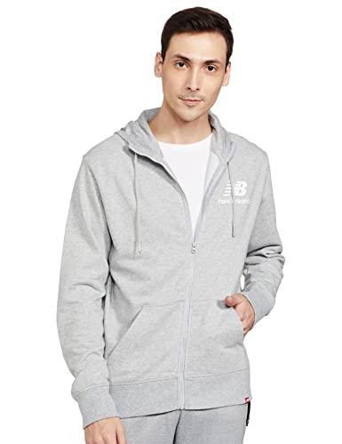 New Balance Esse St LG FZ Ho Felpe con Cappuccio, Grigio, S Uomo