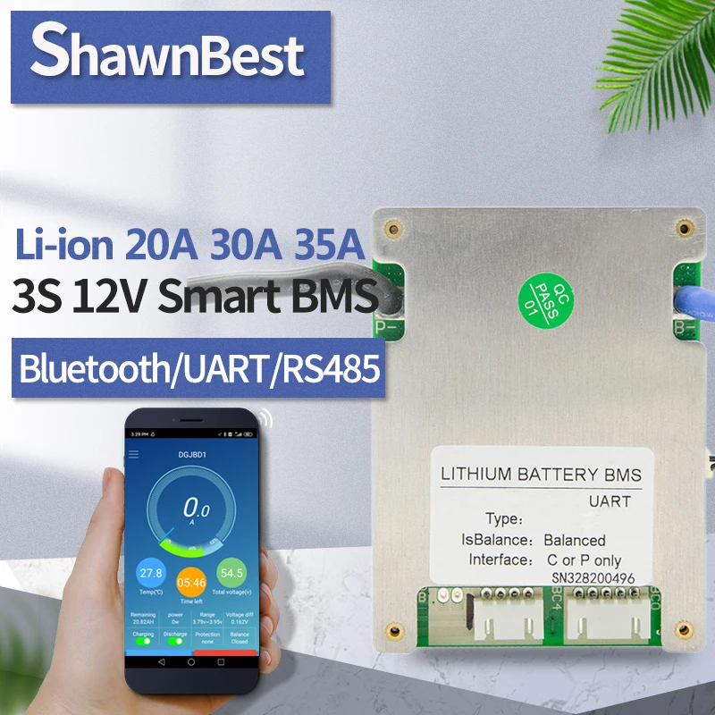3s bms with balance 12V Lipo 20a 30a 35a Solar cell smart bluetooth UART 485 common port Temperature protection Li-ion PCM