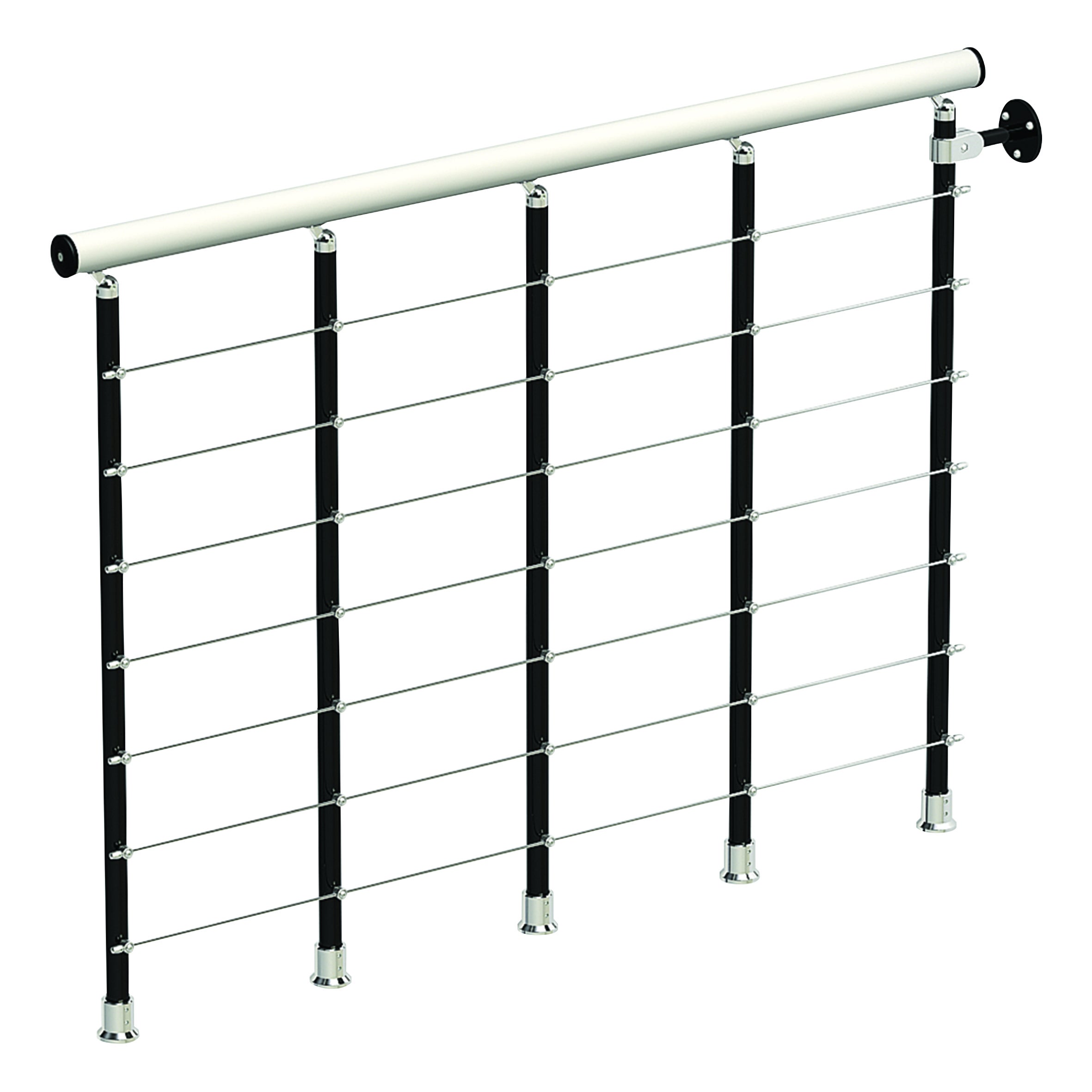 Balaustra Ring tube in legno bianco e metallo nero;