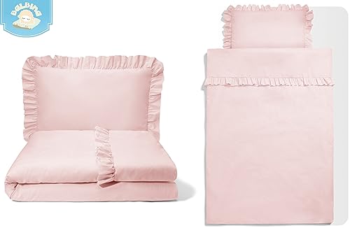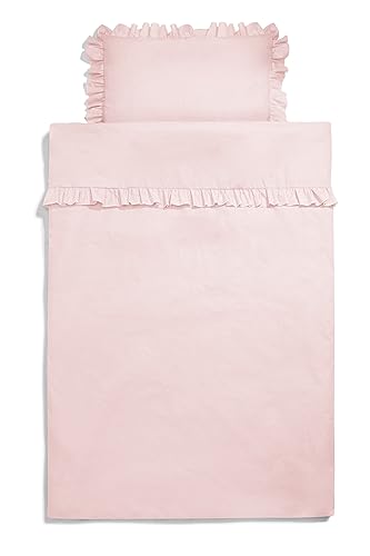 Balbina Biancheria da letto per bambini, in cotone, 2 pezzi, con volant e cerniera, copripiumino 100 x 135 cm e federa 60 x 40 cm, rosa cipria chiaro