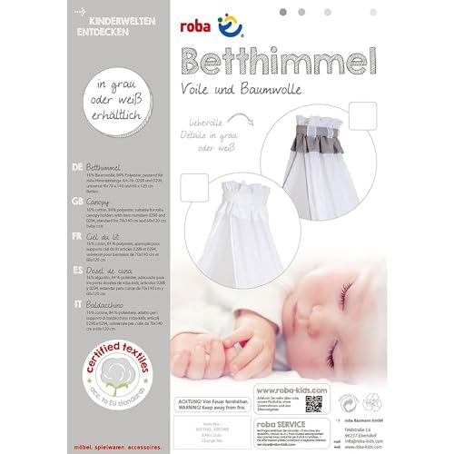 Roba Baldacchino Air per Lettino e Culla - 16% cotone e 84% PES - 160 x 250 x 0.5 cm - Permette il Circolo dell'Aria - Design che si Adatta ad ogni Cameretta - Grigio
