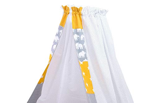 Baldacchino ULLENBOOM ® elefanti, giallo (tenda 135x200 cm, cotone, per lettini da 60x120 cm e 70x140 cm)