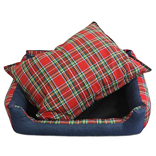 cuccia in denim e tartan