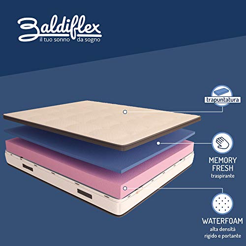 Baldiflex Emporio Materasso Bonjour 140x200 cm 4 cm Memory Fresh Alto 25 cm Rivestimento Trapuntato con Fascia 3D Air Fresh