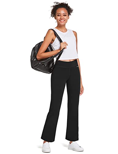 BALEAF Pantaloni da Yoga Donna Pantaloni Campana Donna con Vita Alta Tasca Interna Tanspirante Comodo Pantaloni Sportivi a Casa Nero 32 inch XL