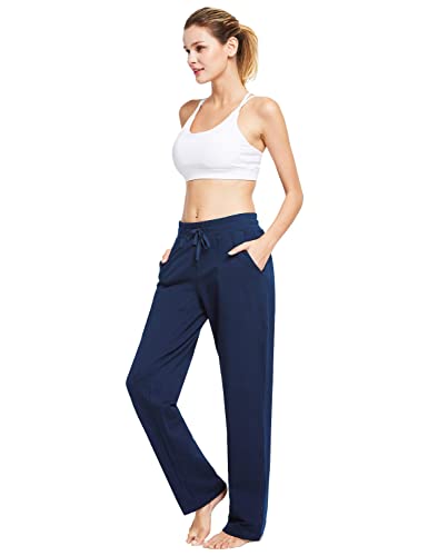 BALEAF Pantaloni Lunghi da Yoga, da Donna, con Tasche Laterali Dunkle Blau L