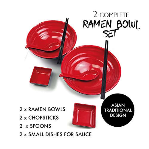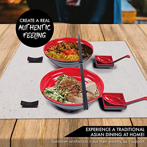 Balibetov Ciotole Giapponesi per Ramen Set - Include 4 Ciotola Ramen in Melamina, Bacchette, Cucchiai e Piccolo Piatti Giapponesi per Salsa - Ideale Per Zuppe Asiatica o Pho- 2 sets, 8pcs (Rosso, 2)