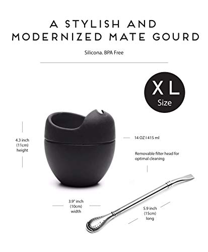 BALIBETOV Grande Silicone Mate Gourd e Bombilla (Paglia) per Bere Yerba Mate - BPA Gratuito - 415 ML. (Nero)