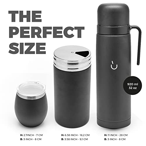 BALIBETOV Yerba Mate Tazza Set - Modern Yerba Mate Tazza, Thermos, Yerba Mate Contenitore (Yerbero), Bombilla (Mate Cannuccia) e Spazzola per la Pulizia - Acciaio Inossidabile 304 18/8 (Nero)