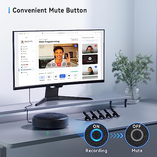 【Ampio intervallo di lavoro】 Basato sulla tecnologia a 2,4 GHz, il microfono per videoconferenza USB con 5 microfoni lavalier garantisce una chiara ripresa della voce di ogni individuo che utilizza il microfono a clip. Il raggio d'azione massimo può arrivare fino a 20 metri, consentendo all'oratore di muoversi liberamente durante le presentazioni mentre ascolta la voce dell'interlocutore senza alzare il volume.