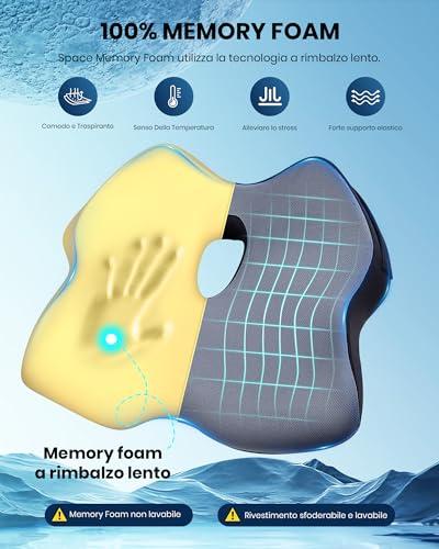 【Miglior Materiale - Memory Foam al 100%】Questo cuscino sedia ufficio BALITT è realizzato al 100% in memory foam, sviluppato inizialmente per migliorare il comfort dei sedili dell'astronave. Sfruttiamo la sua elasticità a lento rimbalzo per fornire il massimo sostegno e comfort al cuscino sedia ufficio, che può ridurre la pressione su fianchi, gambe e vita.Questo cuscino è ideale per le persone che soffrono di mal di schiena, sciatica e lombalgia a causa di prolungate seduta.