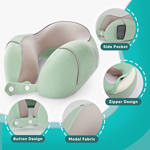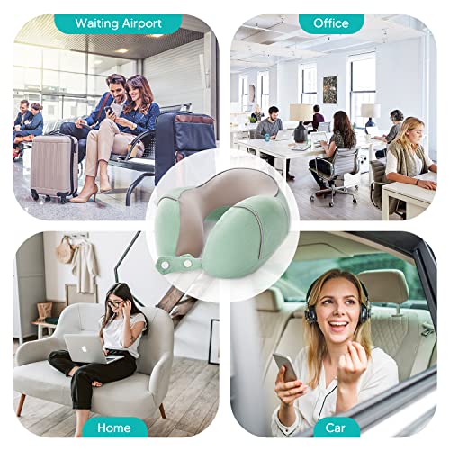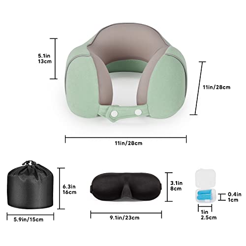 BalladHome Cuscini da Viaggio Cuscino Cervicale da Viaggio Cuscino Collo Memory Foam con Maschera per gli Occhi e Tappi per le Orecchie per Auto Aereo Ufficio e Domestico (Verde)-D
