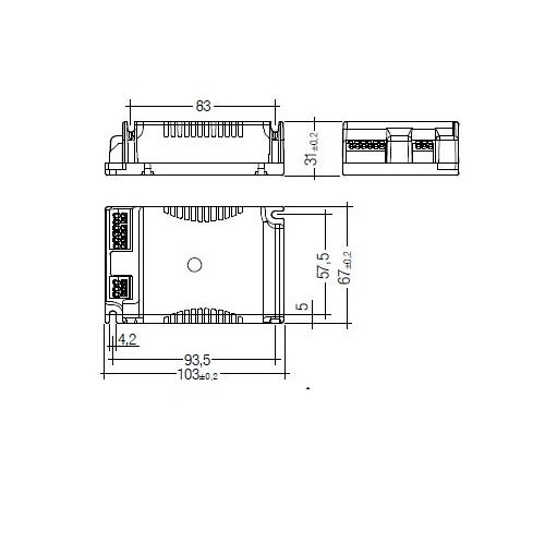 Lunghezza (mm): 103 Larghezza (mm): 67 altezza (mm): 31 colore: bianco tensione (V): 230 Frequenza (Hz): 50/60/0 ta (° C): -25 + 50 TC (° C): 70 grado di protezione: IP20