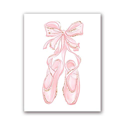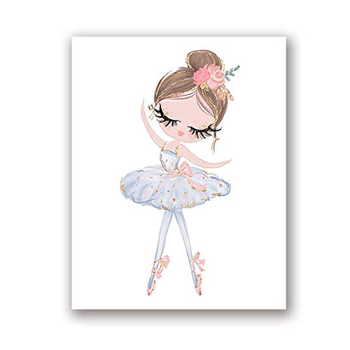 Ballerina Nursery Stampe da Parete Canvas Poster Swan Dance Prints Pittura del Fumetto Decorazione per Bambini Quadri Baby Girl Quadri Moderni Camera da Letto Decor (40x50cmx4 / Nessuna Cornice)