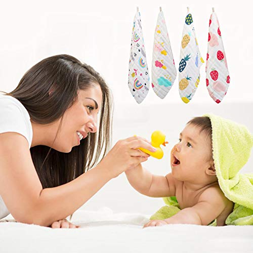 ❤ 【Materiale morbido】 30 x 30 cm, Asciugamani per bambini in cotone 100% mussola, con mussola di cotone naturale a 6 strati, super assorbente e facile da lavare e asciugare. Proteggerà la pelle delicata del bambino.