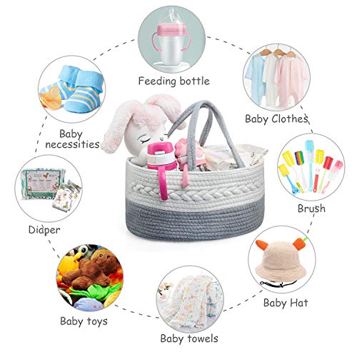 Ballery Baby Pannolino Caddy Organizer, 3 Scomparti Organizer portatile per bambini, Cestino Portaoggetti per Pannolini, Organizer da auto con Divisorio, Doccia Neonato Cesto Regalo Corda di Cotone