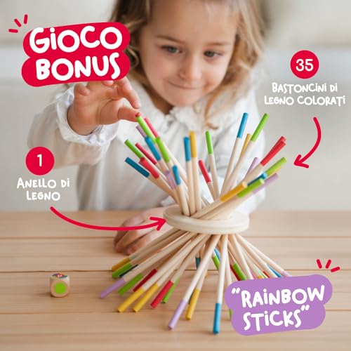 GIOCHI MULTIPLI DA SCOPRIRE: Dal coinvolgente Ball Fall al gioco di equilibrio con le Rainbow Sticks, passando per carte e dadi per ulteriori sorprese, ogni partita è una nuova avventura!