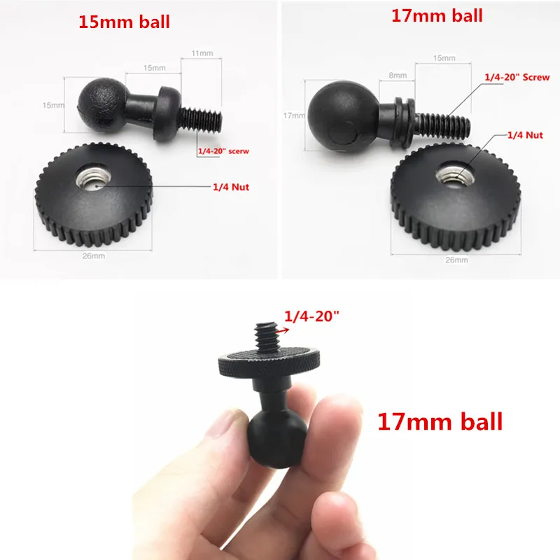 15mm 17mm Ballhead Converter to 1/4 Screw Head for Car Monitor Pad GPS Cellphone Ball Mount Base for gopro
