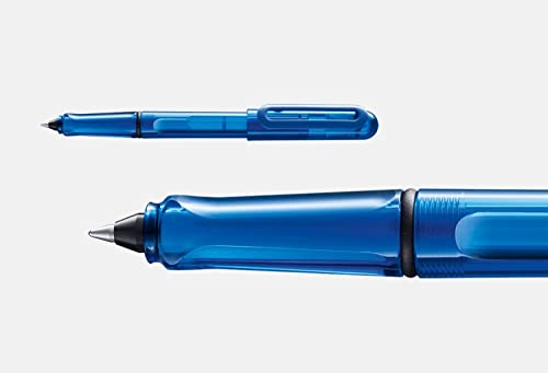Lamy Balloon 311 - Penna roller a sfera completamente trasparente di colore blu con impugnatura marcata e clip elastica in plastica - con cartuccia roller, tratto M