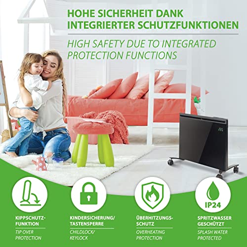 Alta sicurezza: interruttore di protezione antiribaltamento | blocco tasti/sicurezza bambini | sensore di protezione contro il surriscaldamento | protezione IP24 | sensore antigelo | funzione di protezione di riavvio