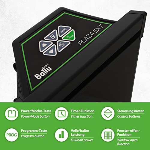 Ballu Plaza - Termoconvettore da 1500 Watt, elemento riscaldante monolitico con tecnologia Double G-Force, montaggio a parete o mobile su ruote, utilizza la circolazione naturale dell'aria, silenzioso, senza ventilatore