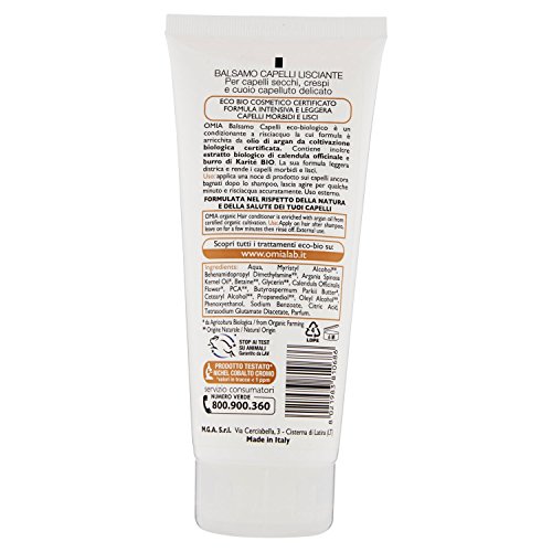 Omia Balsamo per Capelli Eco Bio Con Olio di Argan, Crema per Capelli Secchi e Crespi, Rende i Capelli Morbidi e Lisci, Dermatologicamente Testato, Senza SLES e PEG, 200 ml
