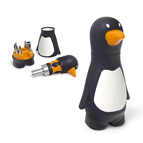 Balvi Cacciavite Multi-Punte Penguin Colore Nero 6 Punte da cacciavite e Adattatore Inclusi Plastica