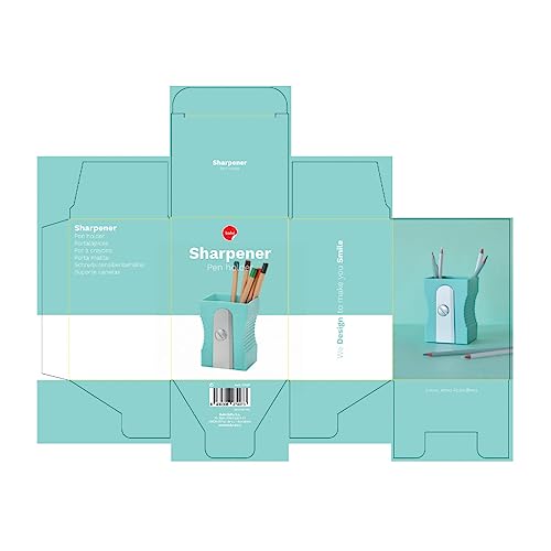 Balvi Porta matite Sharpener Colore turchese piatto originale per matite e temperamatite a forma di d