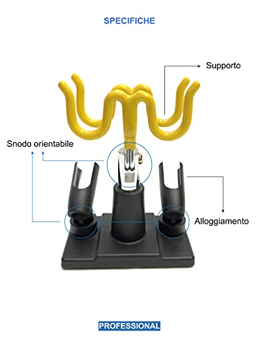 Bamax BX-MP SUPPORT, Supporto per aerografo, supporto per aeropenna, universale con 4 postazioni e morsetto di fissaggio al tavolo, Nero/Giallo