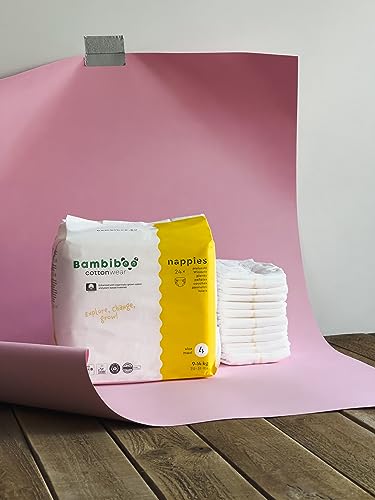 Bambiboo COTTONWEAR - Pannolini per bambini, taglia 4 Maxi (9-14 kg), con cotone biologico e materiali vegetali con indicatore di umidità, 3 x 24 (72 pezzi)