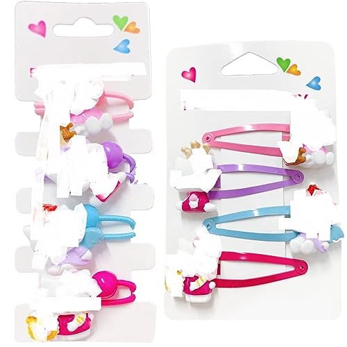 【Quantità Sufficiente】bambina accessori per capelli incluso 4 pezzi elastic hair tie, 4 pezzi clip per capelli snap barrettes, in grado di soddisfare le tue diverse esigenze e abbinarsi ai tuoi vestiti di conseguenza, soddisfano totalmente la necessità di vestirsi da festa per legare i capelli e varie acconciature per bambini.