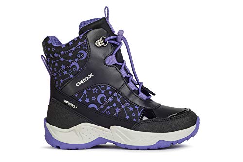 Geox Bambina Stivali Sentiero Girl WP,Stivali Invernali,all'aperto,Caldo,Foderato,Removable Insole,Black/Violet,34 EU / 1.5 UK