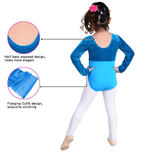 TXJ Bambini Balletto Body per Danza Classica e Ginnastica Artistica - Manica Lunga (Blu, Altezza=90-100cm)