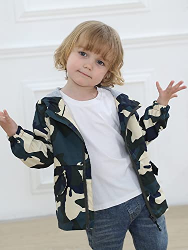 Bambini Cappotto Giacca a Vento Con Cappuccio, Unisex Autunno Antivento Stampa Giacche(Verde mimetico, 18-24 mesi)