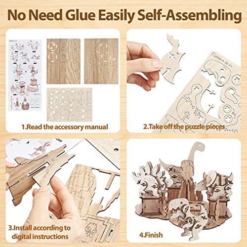 Decorazioni e Regali Eccellenti: oltre a divertirti e rilassarti, questo modello 3D può anche essere una decorazione unica. Questo dinosauro puzzle in legno 3D viene fornito con parti del vulcano e, puoi posizionarlo su una libr