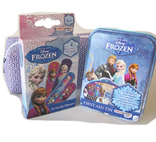 Per bambini Frozen personaggio Infectiguard + salviette assortiti sterile, termometro, adesivi, striscia, 36 pezzi con cerniera per primo soccorso Tote