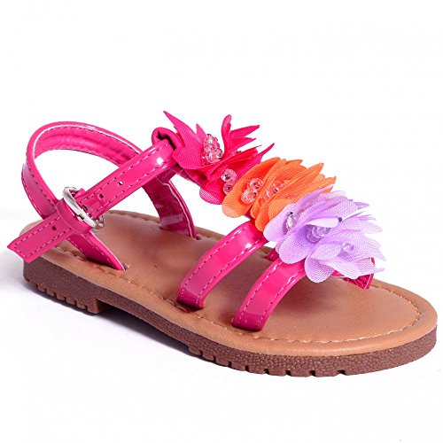 Bambini Madchen Babys Bambini Rosa Fucsia Multi Floral Scarpa-Sandali Flip Flops Pompe sabotatori graae 4-12