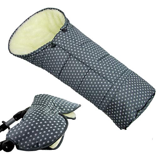 Bambini MONDO combinazione di Offerta Muff + SACCO A PELO/Mummia in lana d' agnello per passeggino, Buggy, Slitta - Stelle grigio scuro